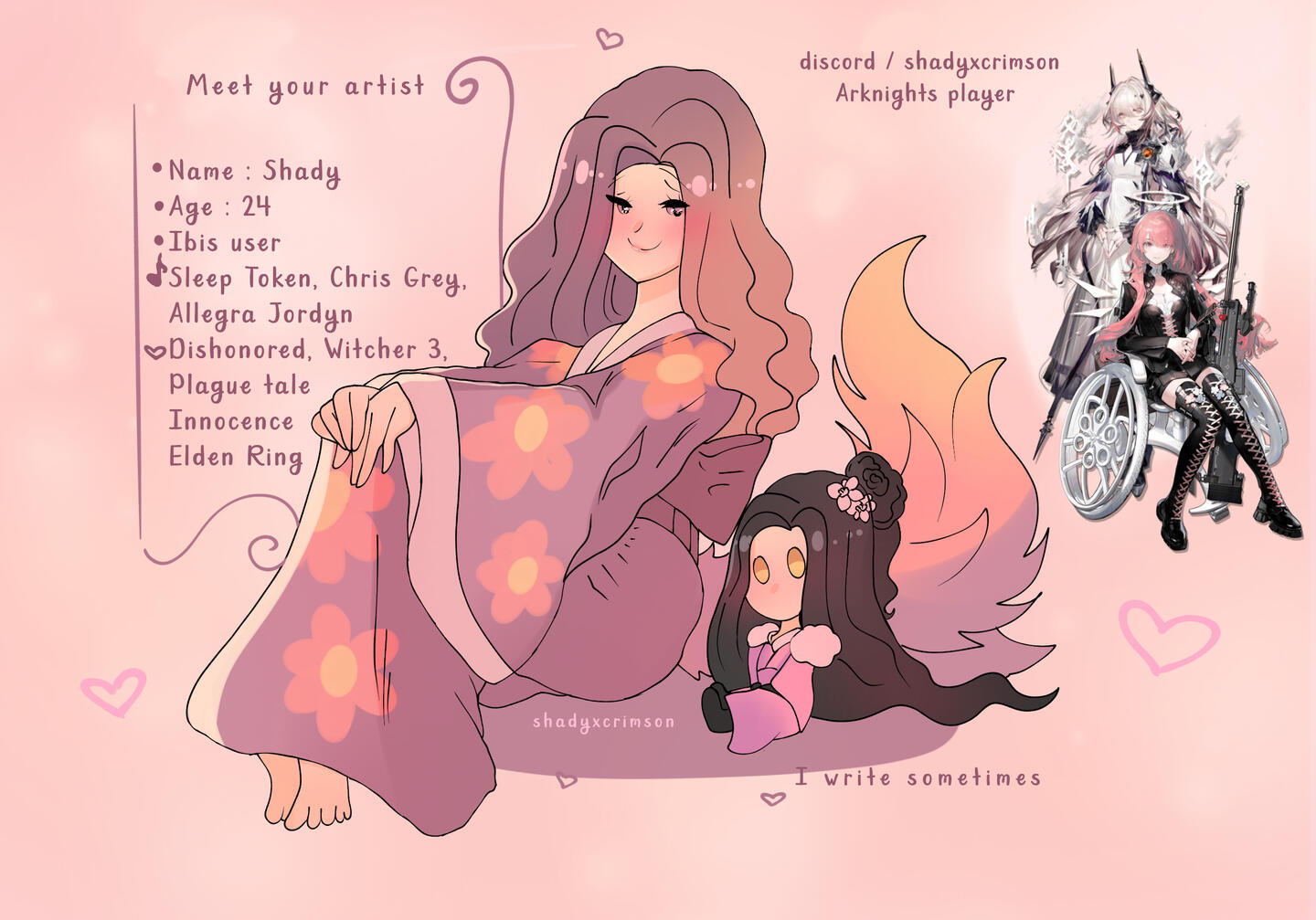 shadyxcrimson is my most recent name like I said, you can find my works here, on bluesky, discord, vgen, kofi, artfight..